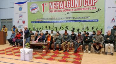 नेपालगन्ज रङ्गशालाको कभर्डहलमा बिहीबार राष्ट्रिय स्तरको खुला ब्याडमिन्टन प्रतियोगिता सुरु भएको छ । प्रतियोगिताको लुम्बिनी