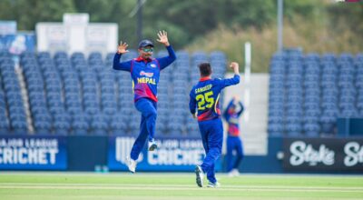 अन्तिम ओभरमा २ विकेट गुमाएपछि नेपाल आइसिसी क्रिकेट विश्वकप लिग–२ अन्तर्गत स्कटल्यान्डमा आइतबार राती भएको
