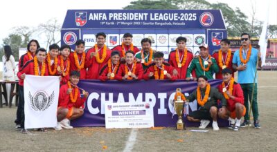 गोलरक्षक अन्जल श्रेष्ठको सानदार प्रदर्शनमा चित्लाङ फुटबल क्लबले एन्फा प्रेसिडेन्ट लिग फुटबल प्रतियोगिताको उपाधि जितेको