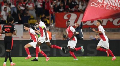 नाइजेरियाका स्ट्राइकर जर्ज इलेखेनाले च्याम्पियन्स लिगको डेब्युमै गोल गरे पछि मोनाकोले १० खेलाडीमा सीमित बार्सिलोनालाई