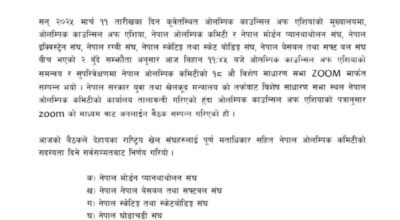 नेपाल ओलम्पिक कमिटीको निर्वाचनका लागि २३ डिसेम्बरका दिन अनलाइन मार्फत उम्मेदवारी दर्ता भएको छ ।
